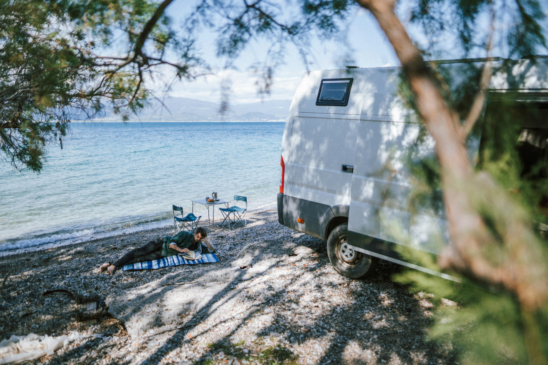 Selv på en travl campingplads kan du skabe et lille hjørne til ro og fordybelse. Et tæppe, en stol og en termokande med kaffe kan være nok. Gør det til en vane at sætte dig der en stund hver dag – med en bog, en notesbog eller en skitseblok.